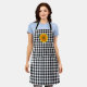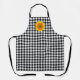 This apron is shown as is in a black, grey and white coloured gingham print with a sunflower accent.