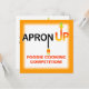 APRON UP! A fun text graphic featuring a fork in food colours to encourage experimentation in culinary pursuits and creative cuisine for foodies everywhere!