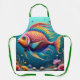 Apron with a large colorful happy fish with shells and grasses. AI Generated with my editing.