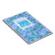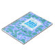 Beautiful abstract background (pastel colours: blue, light purple and turquoise) with a half-transparent white square tag (tiny transparent border) for name, date and birthday. All is customisable for this 30th birthday guest book.