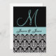This black and white and aqua blue invitation with its brocade damask pattern makes an elegant wedding invitation. Add your names and monogram on the front, and your wedding invitation on the back.