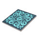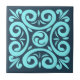 Aqua and Black on Blue Intricate Floral pattern Ceramic Tile