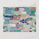 Aqua and Blue Quilt Tapestry Design Postcard