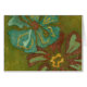 Aqua and Burnt Orange Flowers on Green Background
