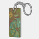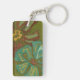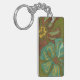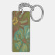 Aqua and Burnt Orange Flowers on Green Background Key Ring