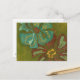 Aqua and Burnt Orange Flowers on Green Background Postcard