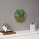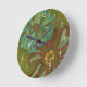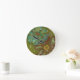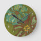Aqua and Burnt Orange Flowers on Green Background Round Clock