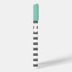 Personalised phone case with charcoal grey and white stripe pattern and aqua colorblock monogram. Use the design tools to customise the text or add your own photos.