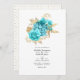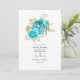 Aqua and faux foil gold floral wedding invitation with accents of teal customisable to your event specifics.