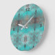 Aqua and Grey Geometric Pattern Large Clock