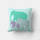 Elephants of aqua polka dots, lavender with aqua dots, and a chevron striped elephant of aqua, lavender, and white on a throw pillow perfect for any room of the house!