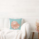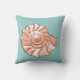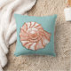 This lovely accent pillow features a nautilus shape sea shell in peachy, salmon pink, on a customisable aqua-blue background.