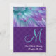 This design with aqua and purple dahlia flower petals peeking out from behind rich royal purple background of interlocking circles symbolising wedding rings makes an elegant wedding invitation, and is currently featured on an ce hued metallic paper which gives your invitation an extra special shimmer and shine.You can experiment with different paper types to get just the look you want. A matching RSVP is shown below.