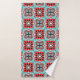 A colorful bold red and bright aqua green pattern comprised of intricate tiles livens up your bathroom decor