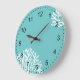 Aqua and White Coral Large Clock