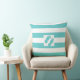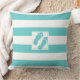 Bold aqua and white stripes with summer pool side flip flops design pillow for your beach house.