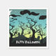 Aqua and yellow haunted graveyard Halloween paper napkin. A haunted cemetery in aqua blue and yellow with gravestones, spooky trees, a witch, an owl, bats and your text "Happy Halloween" are the elements of this Halloween paper napkin.