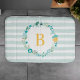 Aqua and Yellow Monogrammed Floral Wreath Bath Mat
