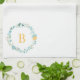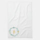 Aqua and Yellow Monogrammed Floral Wreath Tea Towel