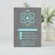 Cute and nerdy Atomic Chalkboard Wedding Response Card featuring a simple atomic symbol in turquoise on a chalkboard look background. This geeky and fun wedding RSVP card is perfect for the science enthusiast couple! Easy to customise, simply add the details of your wedding in the spaces provided. Click "Customise It" to find more personalisation options.