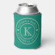 Aqua Beach Breeze Wedding Monogram Heart Can Cooler
