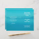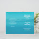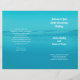 Aqua blue, folded wedding programs for a simple, seaside ceremony. A background image of a beach at low tide and ocean waves out to sea is the background for white text on both sides of 8.5 x 11 inch recycled paper (or choose another type). Text will be added for the front of the program and three more pages. Paper must be folded after purchase. The first side has a title, names of couple in bolder text, and a place for date, time and location of event. The back of the program can have text where a sample "thank you" note is shown. Inside left is the order of the ceremony and inside right is the list of special people, such as parents, officiant, and the wedding party. Create this program, which works for all couples, as a keepsake for a small wedding in the sand.