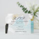 Refreshing and classy design features an aqua teal blue ocean shore scene with white waves crashing on the coast. Fresh clear blue water and white sand with blue sky and white puffy clouds. In the foreground is a beautiful white orchid flower close-up in high quality. This serene and tranquil zen image is perfect for a beach wedding, or spa resort vacation travel themed special event or business occasion. Relax while getting a massage, spa manicure or pedicure at the salon. Enjoy relaxation and peacefulness by the beach and ocean shores. All Designs Copyright © 2012 www.CustomInvitesOnline.com