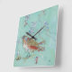 Aqua Bird by Kellie Day. Small songbird created with varying textures to add depth. Background is a beautiful teal with small blue flowers.| SID21474