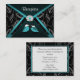 Aqua & Black Love Birds Wedding Reception Cards - put these into your wedding invitations to let your guests know about your reception details. These reception cards match the wedding suite below. Each card features a black, grey, white and silver swirly design with leaves underneath an elegant envelope design with printed diamonds and an aquamarine embellishment.
