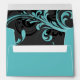 Aqua Black Wavy Floral A7 Wedding Envelope