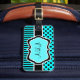 Aqua, Black, White Striped Polk Dots Luggage Tag