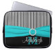 This personalised black and white striped laptop sleeve with an aqua blue FAUX ribbon and jewel brooch has text boxes for you to customise with your own name, monograms, business name, or other text. If you need any help customising, please email niteowlstudio@gmail.com.