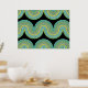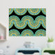 Beautiful contemporary aqua, turquoise, blue, jade green, and real gold foil coloured geometric abstract wave lines pattern on a black background. Elegant, stylish, and eclectic minimalism design for the artistic hip trendsetter, vintage retro art style, or abstract digital geometric motif lover. Match this design with your interior decor colours and decorate your wall with something exclusive and unique on your wall!