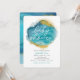 Oceania, beachy inspired baby shower invitation with splashes of gold dust. Suitable for a beach-loving mother expecting a baby boy or girl.