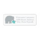 Elephant address labels feature an illustration of a mother elephant and her newborn baby elephant calf. Grey, aqua blue and white colours. Personalise the design template with your return address. Use "Customise it" to edit the text size or colour.