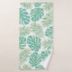 Aqua blue and grey tropical leaves and monogram bath towel set