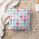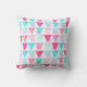 Aqua Blue and Pink Triangles Geometric Pattern Cushion