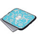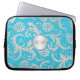 Aqua Blue and Silver Damask Laptop Sleeve