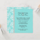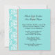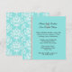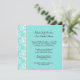 Elegant square wedding invitations done in aqua blue, with an elegant aqua blue and white damask pattern, on the far left side, with a taupe stripe down between the damask background and the solid aqua background. The back is done in the same aqua blue and white damask pattern. Text in dark grey is fully customisable to suit your needs. Lovely colour combo for anytime of the year.