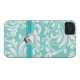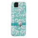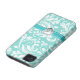 Aqua Blue and White Damask Pattern with Monogram Case-Mate iPhone Case