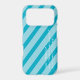 A short, personalized message of encouragement in Python programming language and stripes provide a tech, fashion forward design while protecting your phone. The design's background consists of shades of aqua blue diagonal stripes. The custom message is in white text. The font, color, and location of the text may be changed by using the Edit Design option.