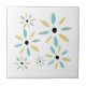 Aqua Blue And Yellow Mid Mod Retro Flowers Ceramic Tile