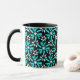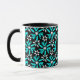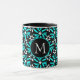 Aqua Blue & Black Batik Flower Pattern Monogram Mug