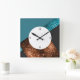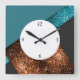 Sparkly wall clock home decor for her bedroom. Aqua blue and bronze sparkles modern colour block. Geometric design colour block art of aquatic blue turquoise and orange brown sparkles. We use Photo of sparkles not actual glitter!