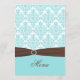 This aqua blue, brown, and white damask menu card matches the wedding invitation shown below. Please note that the ribbon and diamonds are printed images, and are not real. If you require any other matching items, please email me your request.