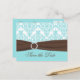 This aqua blue, brown, and white damask Save the Date postcard matches the wedding invitation shown below. If you require any other matching items in this design, please email me your request.