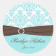 Aqua Blue, Brown, White Damask Wedding Sticker