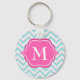 Aqua Blue Chevron Pink White Monogram Design Key Ring