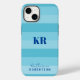 Aqua blue Colour block stripes design with customisable name and monogram initials. You can easily change them to your own or remove if you wish.