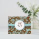 Monogram New Sizes Elegant Vintage Aqua Blue Damask on Brown Wedding Invitation-